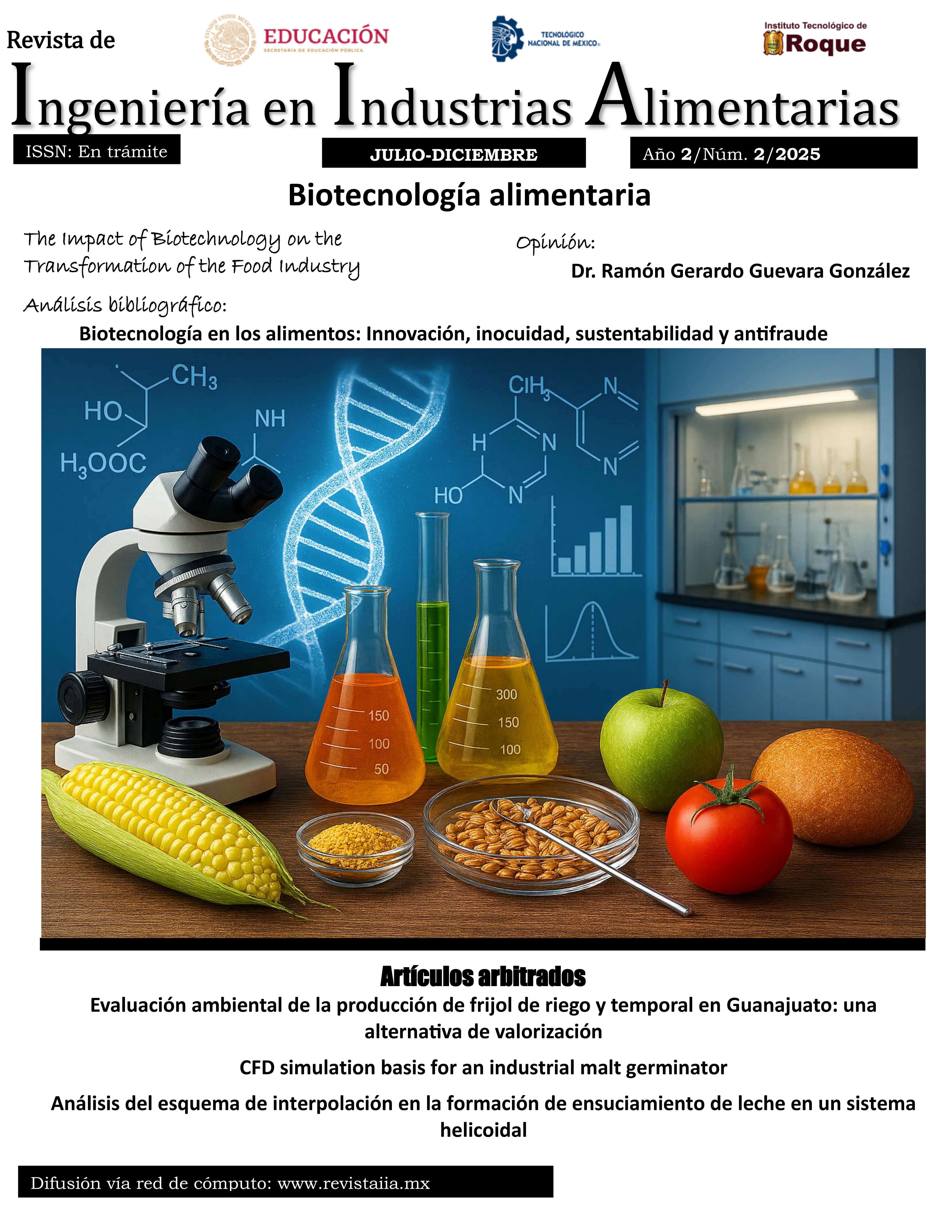 Revista de Ingeniería en Industrias Alimentarias, año 2, núm. 2, julio-diciembre de 2025, es una publicación semestral editada por el Tecnológico Nacional de México, Av. Universidad No.1200, Col. Xoco, Alcaldía Benito Juárez, C.P. 033305, Ciudad de México, Teléfono 5536002511 Ext. 65092. Página electrónica de la revista: http://www.revistaiia.mx/. Correo electrónico: riia.editor@roque.tecnm.mx. Editor Responsable: Dr. Christian Oliver Díaz Ovalle. Certificado de Reserva de Derechos al Uso Exclusivo No. 04-2025-031114474700-102, ISSN: (en trámite), ambos otorgados por el Instituto Nacional del Derecho de Autor. Responsable de la última actualización de este número: Lic. Thamara Molina Grimaldo, Departamento de Comunicación y Difusión, Instituto Tecnológico de Roque, Km. 8.0 carretera Celaya-Juventino Rosas, C.P. 38124, Celaya, Guanajuato, México, fecha de última modificación: 22 de diciembre de 2025.